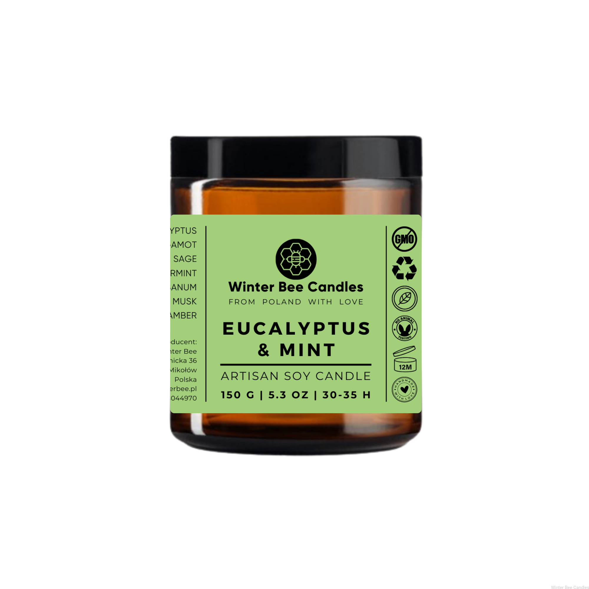 Świeca sojowa Winter Bee Candles - Eucalyptus & Mint - 150g - ostatnie sztuki